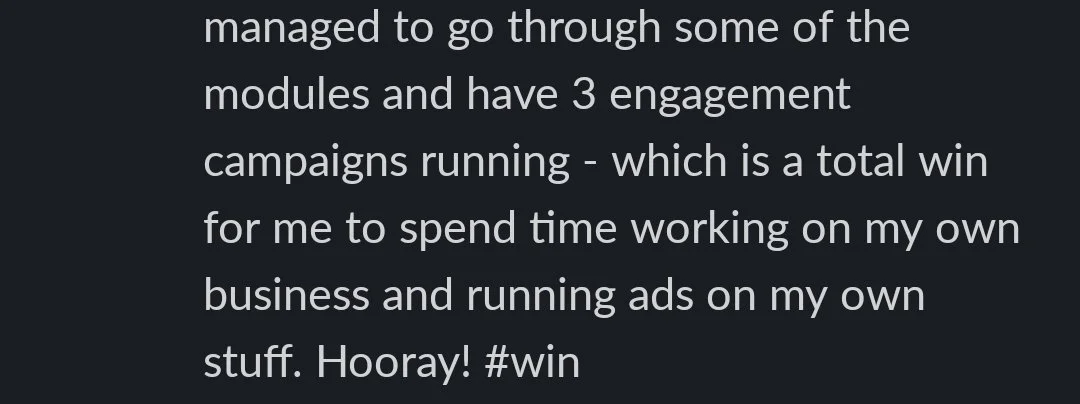 “Getting lead ads live for my biz was a win; more importantly growing my email list by 100 in 2 weeks”