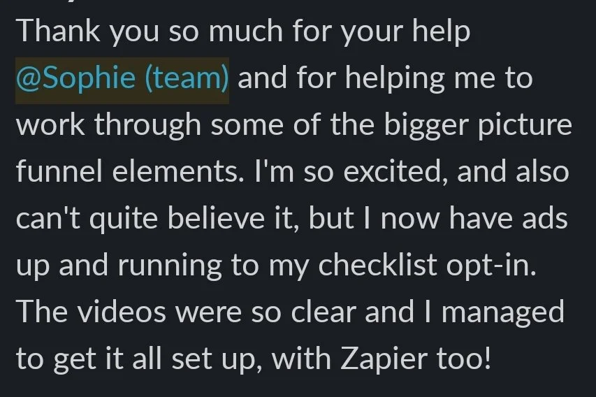 "I now have a marketing mechanism I can use to grow my audience that I know works, and I also know how to test new ideas. I have also set up so many other additional things, such as nurture sequences and have a structured sales process that I never had before.”