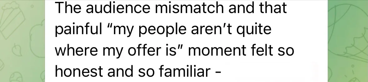 You’re looking for the conversations usually had behind closed doors the ones that make you go: “Oh. THAT’S why mine hasn’t clicked yet… and THAT’S what to do next.”