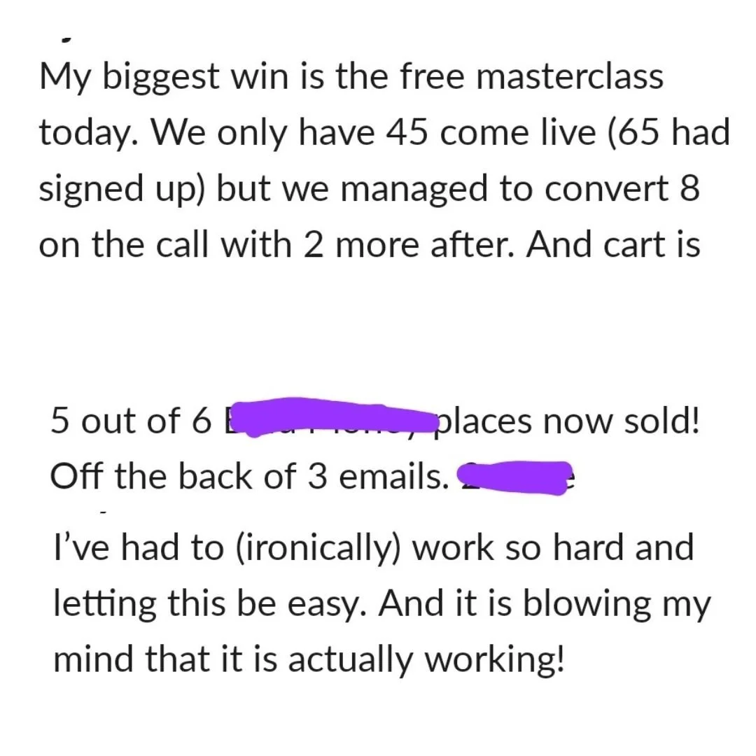 In 2025, my group programme did six figures from one offer alone, with another £160k coming in from other offers running alongside it, while I lived my actual life.